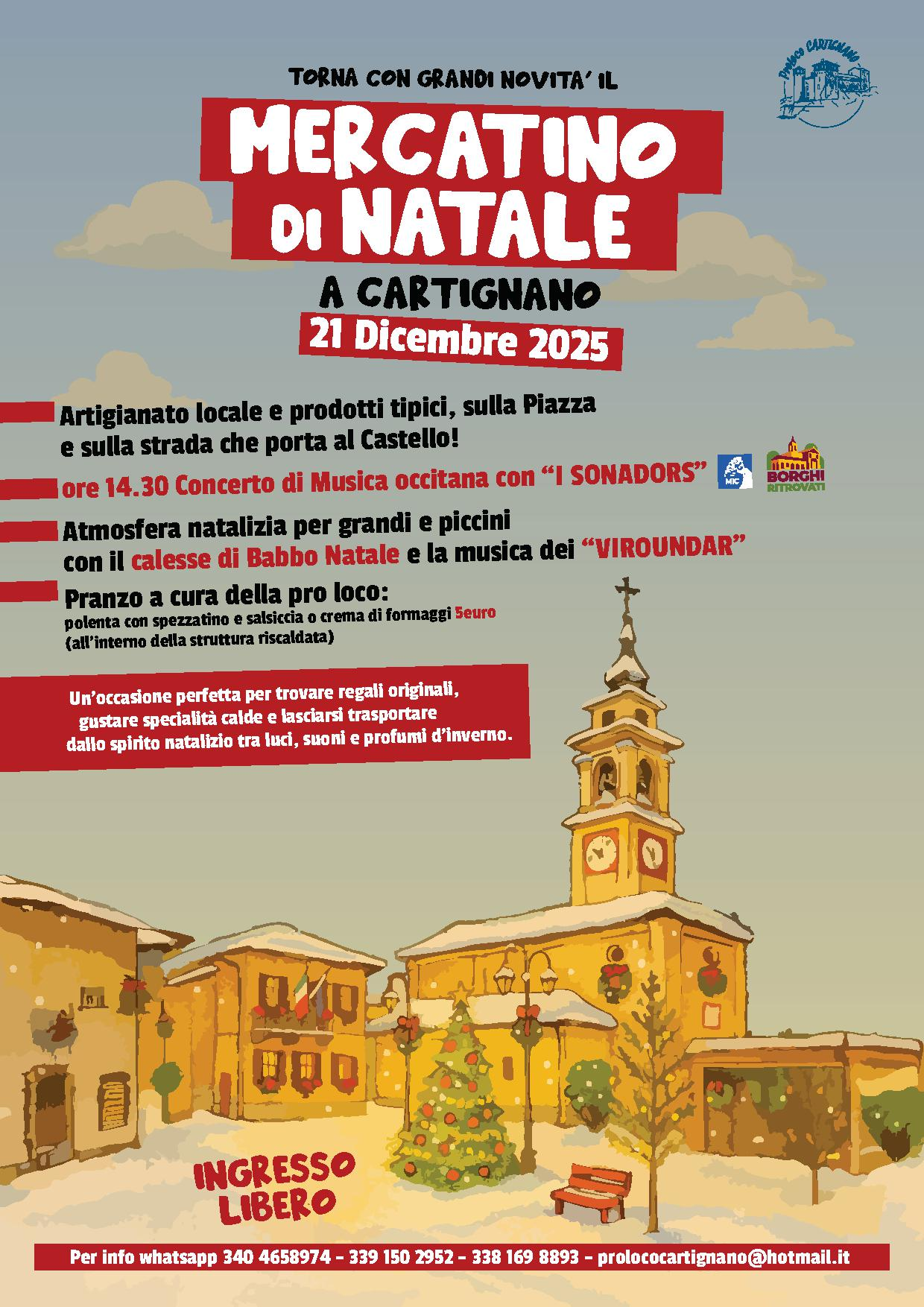 Ingresso libero - per info whatsapp 3404658974 - 3391502952 - 3381698893 - prolococartignano@hotmail.it